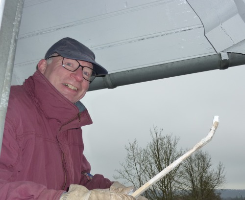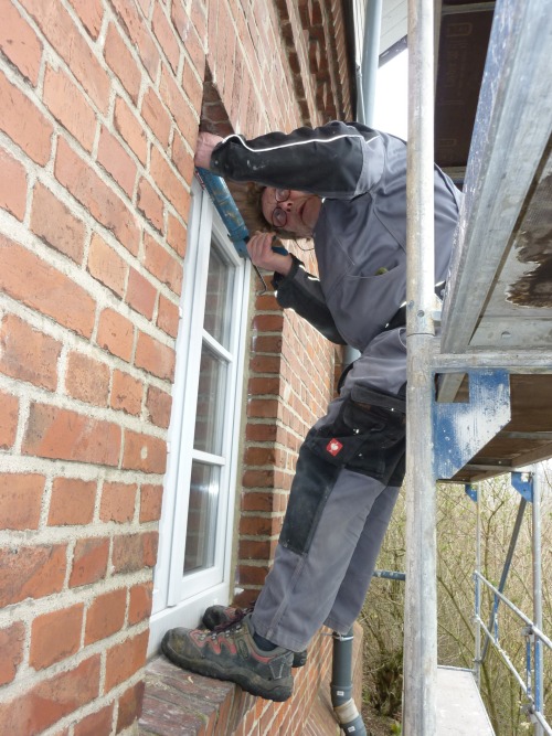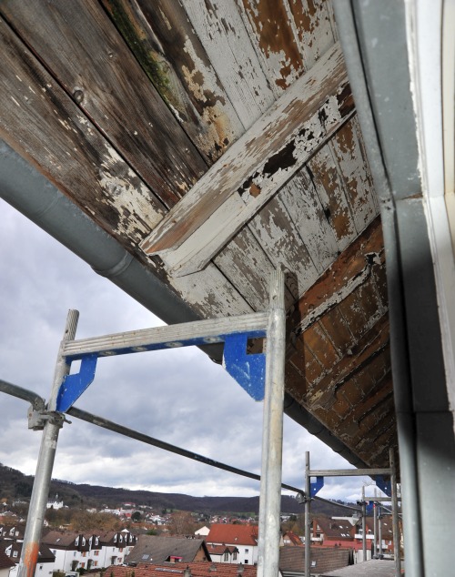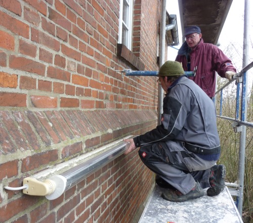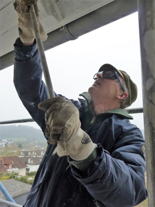 ![]() Für die Aufstellung des Gerüstes auf der abschüssigen Rückseite war professionelle Hilfe nötig ![]() ![]() Dachüberstand und Dachpfannen bedurften dringend einer Behandlung ![]() ![]() Also erst mal pinseln bei leider ungünstigen Wetterbedingungen ![]() ![]() Auch eine Überprüfung der Außenbeleuchtung und das Abdichten der Fenster stand auf dem Programm ![]() Nebenbei wurde noch ein Fundament für den neuen F-Kasten angelegt. Am Tag des offenen Denkmals wird alles in Funktion zu besichtigen sein. |