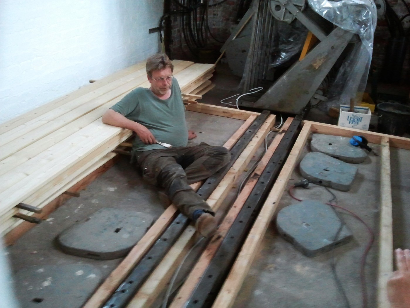 ![]() Kleine Pause bei der Verlegung des Fußbodens |